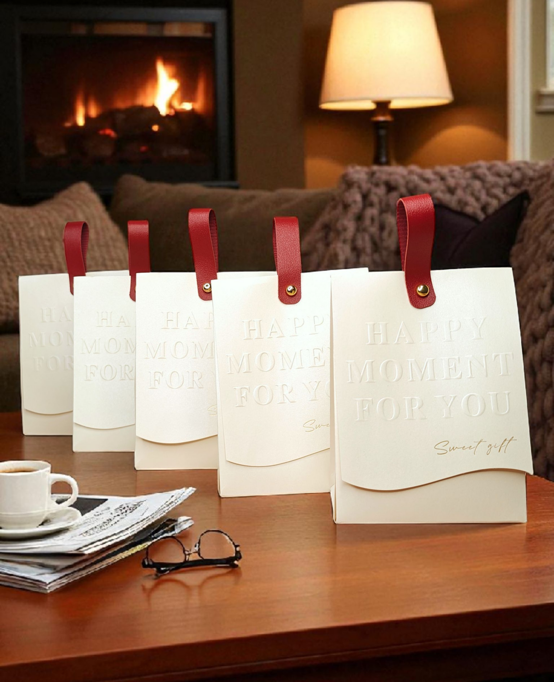 📦 Packaging: This Rakhi hamper comes in a premium white upright box with a bold red handle and gold hardware, embossed with “Happy Moments For You” and “Sweet Gift” – understated yet elegant, and ready to delight!
